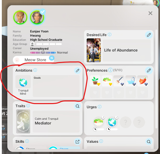 - start an ambition (ex: Tranquil Mind).