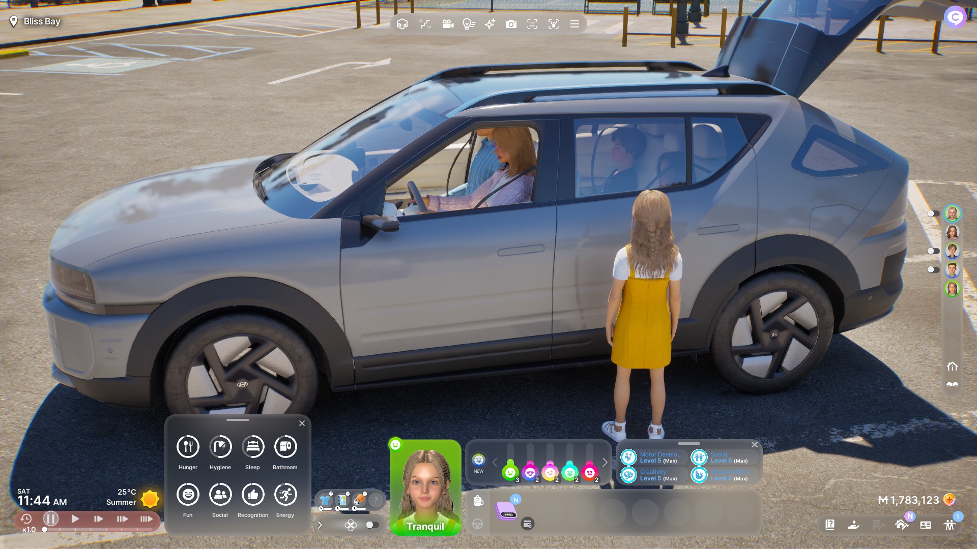 A larger family can’t fit more than four passengers in a single vehicle, so the only solution I see is to bring an additional car. I’m hopeful that in the future, inZOI will allow for a lucky fifth passenger to sit in the middle.
