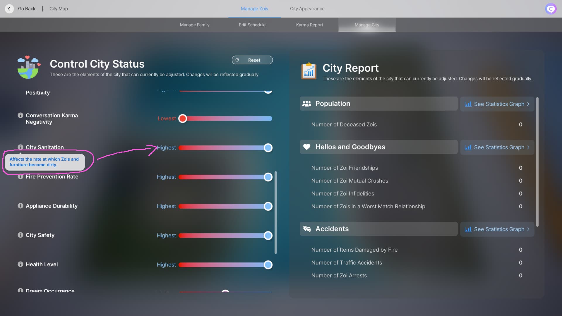 I also have the âCity Sanitationâ in the city settings on highest possible and before, things didnât get dirty so fast. Except for one coffee table a few months ago.