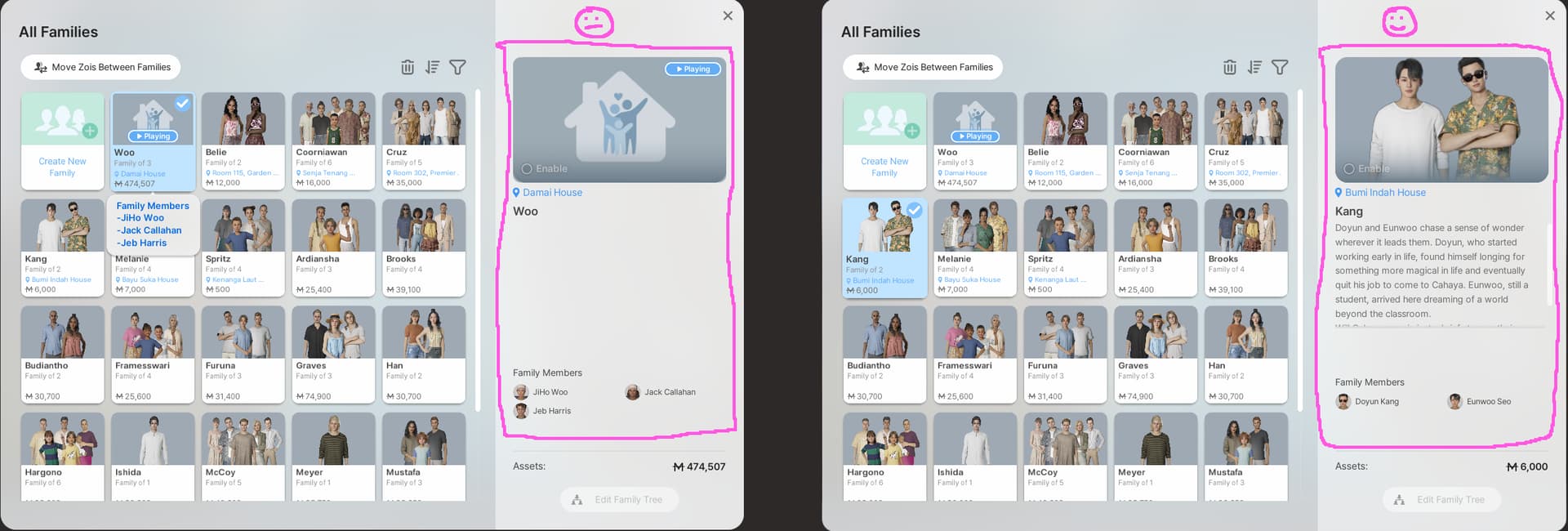 I would love to have a pic of my Zois household (like the premade families have) in the household manager and edit their Bio