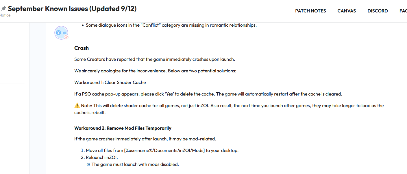 If you encounter a problem not yet listed, please let us know through the Bug Reports board. We’ll continue monitoring and improving your experience with inZOI.